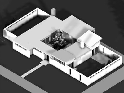 Después de cuadrar los programas en planta, en una primera aproximación al tratamiento de los volúmenes de ambas edificaciones, la altura de Ca la Cristina nos da la pauta para relacionar las dos viviendas: si tratamos de manera similar las dos plantas bajas, se establecerá un diálogo entre ellas, diferenciándose por los elementos de cubierta y la construcción en planta piso de Ca la Pilar.