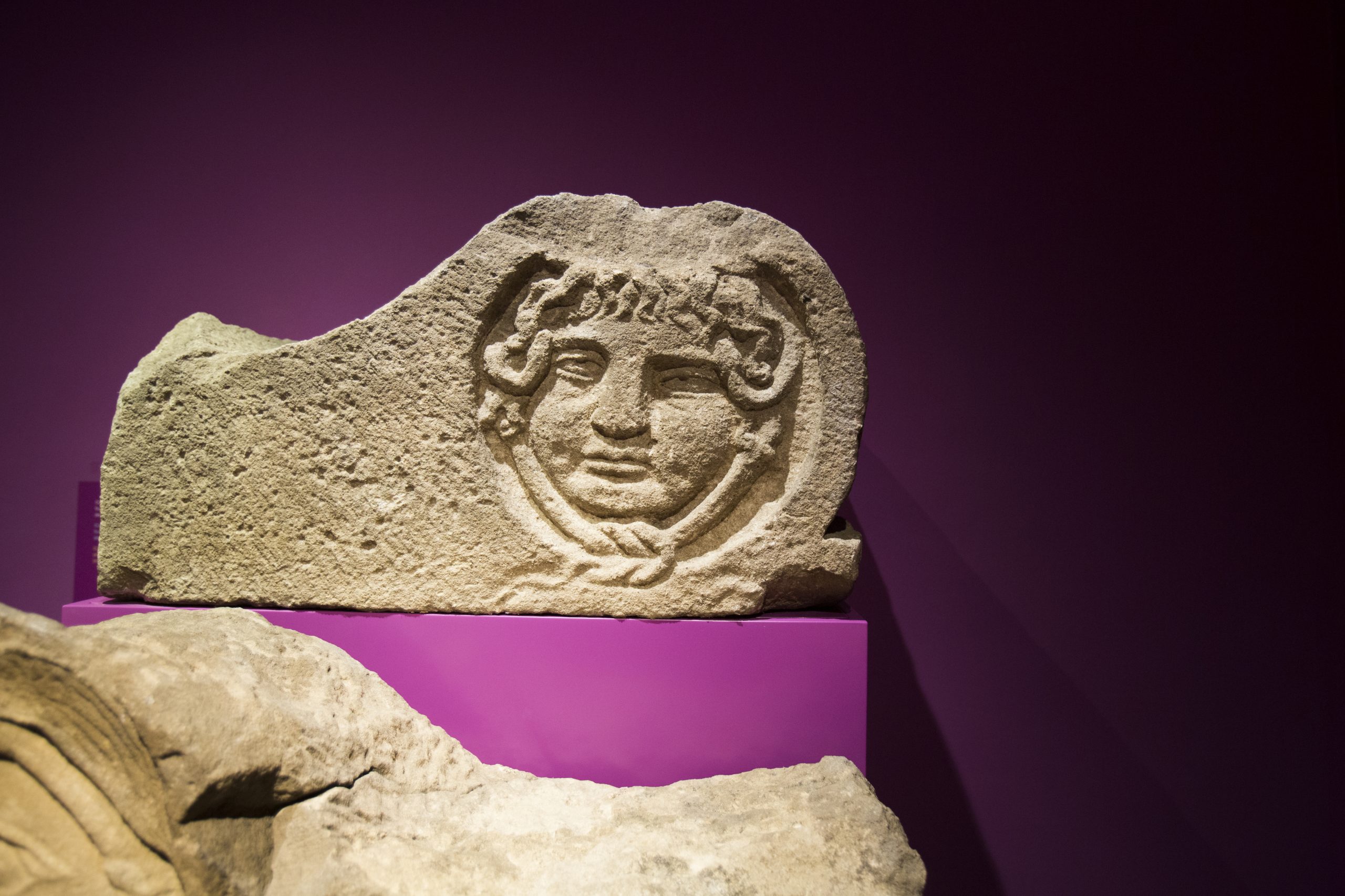 La sala se viste con una piel ligera que contiene imprimida la gráfica y los textos del discurso museográfico. Esta nueva piel de policarbonato forra también el muro que contiene la hornacina con el mosaico romano y, en el lado opuesto, el muro que contiene el fresco que representa un fragmento de caballero. De este modo, estas dos piezas integradas en el espacio pasan a formar parte de la museografía con el mismo tratamiento que el resto: una ventana/vitrina que se hace paso entre la superficie gráfica.